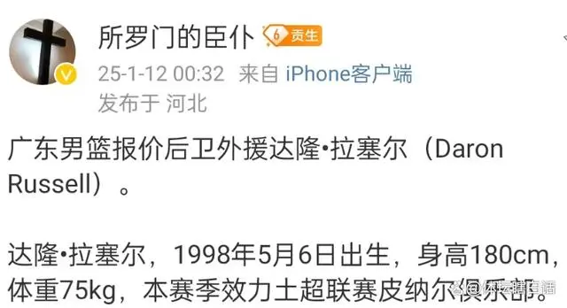 不过广东宏远也确定了新的小外援人选,就是身高1米80的拉塞尔,他之前在土耳其打球,和刚加盟辽宁男篮的韦伯是队友,朱芳雨的选择还是出其不意,当然,也有抄作业的嫌疑。